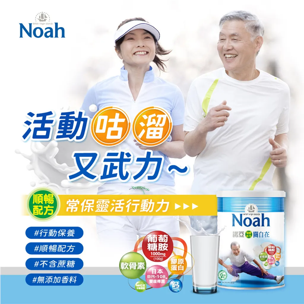 主要成分:脫脂奶粉、植物油粉[葡萄糖、氫化椰子油(含MCT中鏈脂肪)、乳化劑(脂肪酸甘油酯)、牛奶蛋白、穩定劑(檸檬酸鈉、磷酸鉀、β-胡蘿蔔素、二氧化矽)]、葡萄糖、麥芽糊精、燕麥粉、大豆分離蛋白、麥芽萃取物、菊糖、磷酸鈣、葡萄糖胺鹽酸鹽、多種礦物質及維生素(氧化鎂、維生素C、焦磷酸鐵、硫酸鋅、鉻酵母、維生素E、菸鹼醯胺、泛酸鈣、維生素A、硫酸銅、維生素D3、維生素B12、維生素B2、維生素B6、維生素B1、葉酸、生物素)、軟骨素、膠原蛋白(魚來源)、乳酸菌(日本乳酸菌BR-108®)