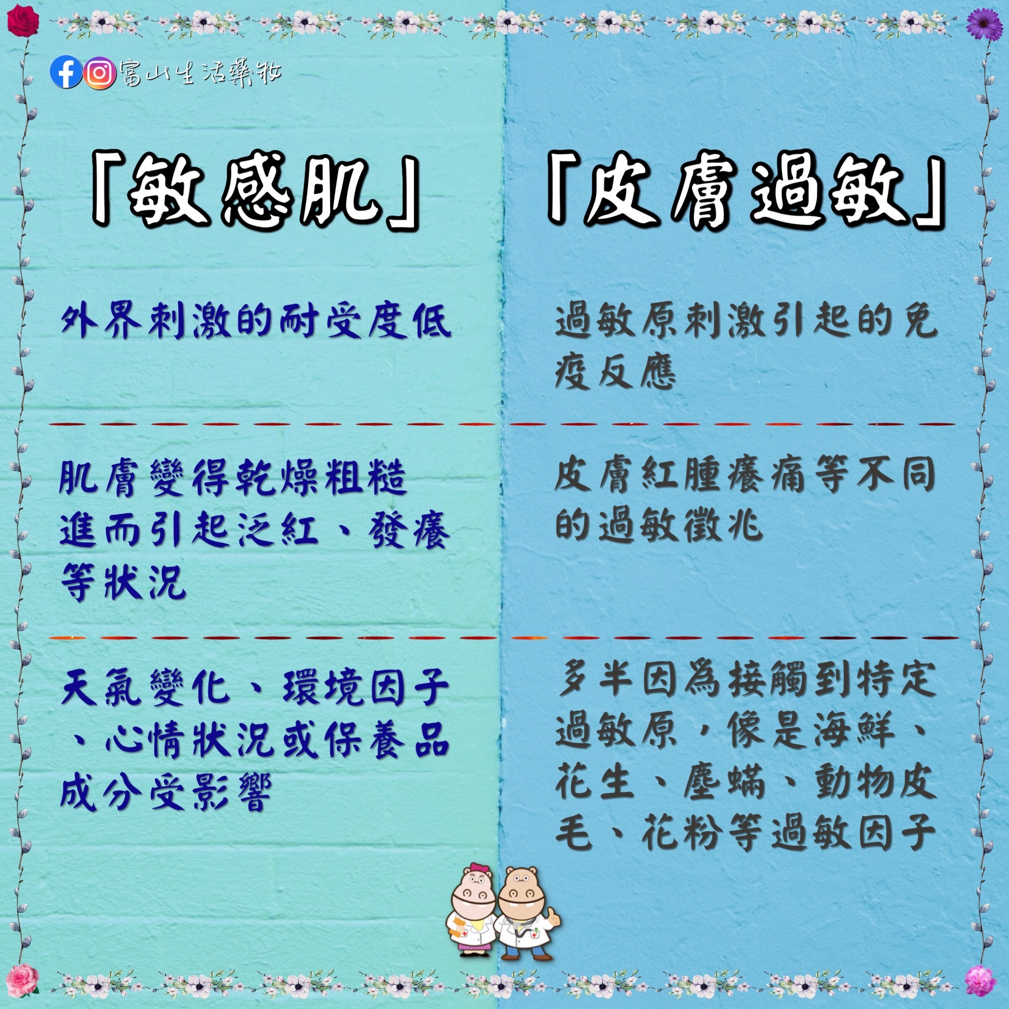 敏感肌:多屬於對外界刺激耐受性低,會因為天氣、環境、心情的變化,和使用的保養品成分的影響,使皮膚變得乾燥粗糙,甚至引起泛紅發癢等等狀況。