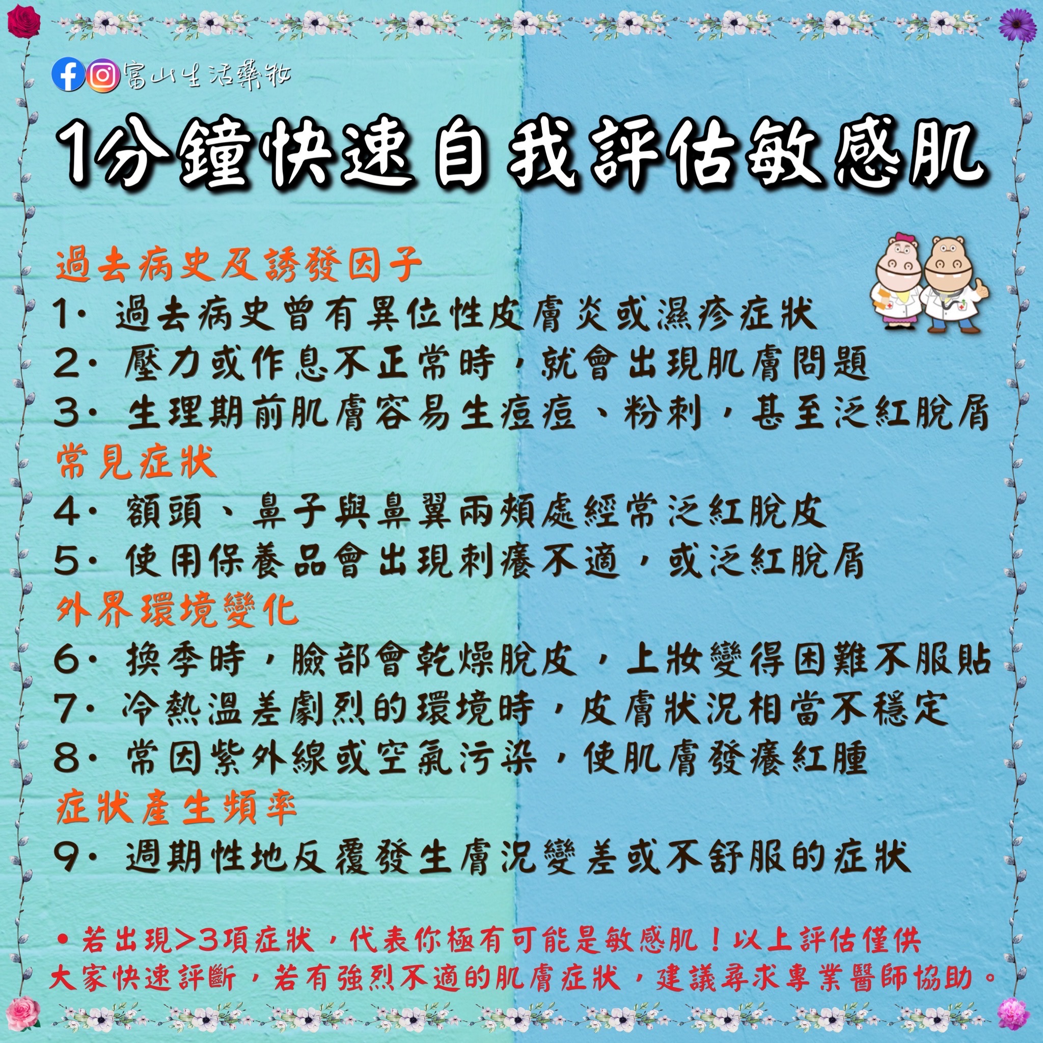 可以先試試『1分鐘快速自我評估』自己是不是敏感肌唷!