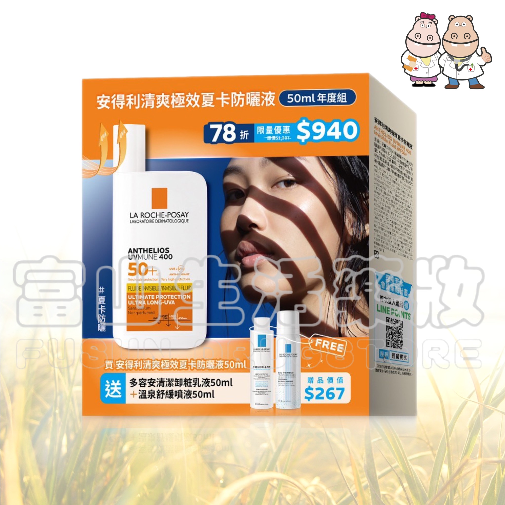 理膚寶水 安得利清爽極效夏卡防曬液50ml年度組【富山】藥局通路限定 LA ROCHE-POSAY