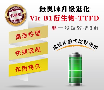 補充能直接吸收的Vit.B1衍生素,維持能量正常代謝